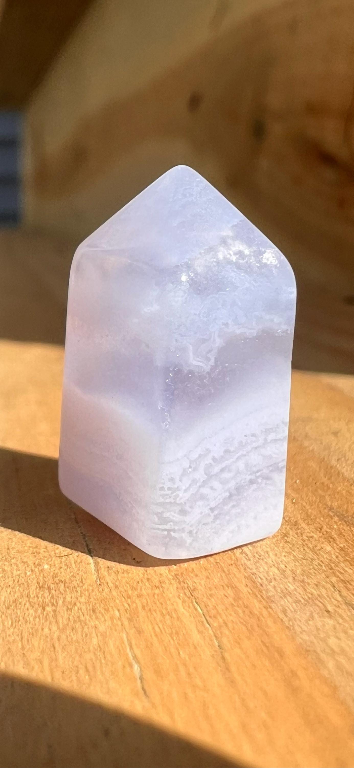 Your choice mini blue lace agate tower. Each measures between .6"-1" tall. You will receive the exact item you choose. All measurements are approximate.